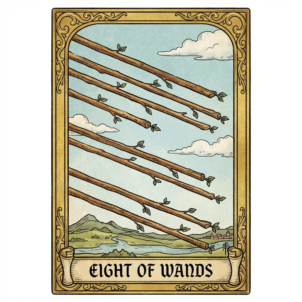 Discover what Eight of Wands means in the context of your life and question.