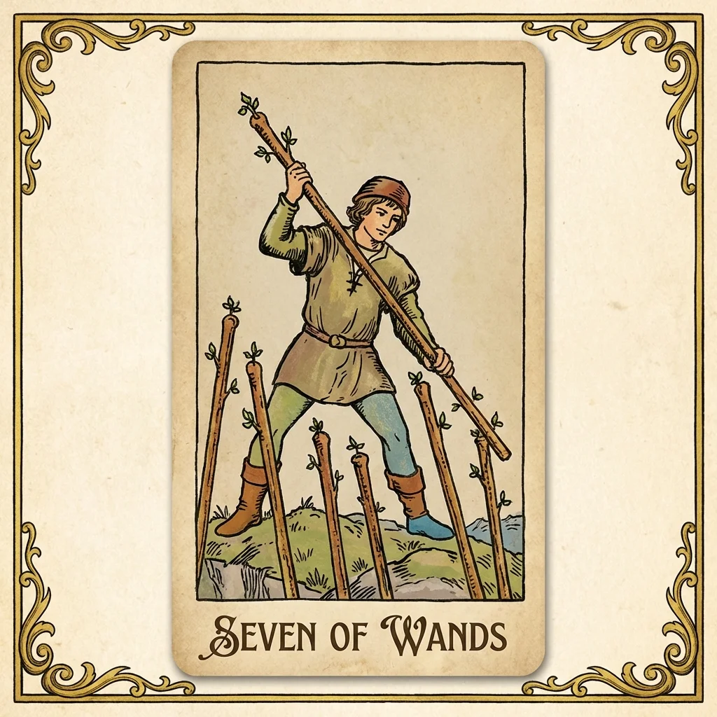 Discover what Seven of Wands means in the context of your life and question.